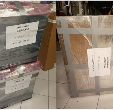 Pour illustrer notre efforts, nous avons joint trois images qui montrent l'emballage des colis et la préparation avant l'envoi. Ces photos témoignent de notre enthousiasme et de notre engagement envers la cause.